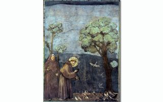 « Prêchant aux oiseaux » 270 cm x 200 cm- 1297-99 -peint par Giotto (1267-1337) Faisant partie des 28 fresques peintes de la Basilique St François à Assise en Ombrie (Italie). François